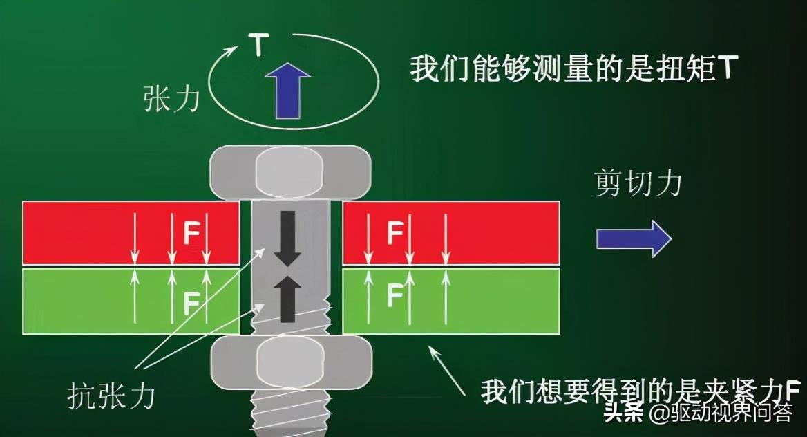 差速器螺栓的擰緊是為了用螺栓的夾緊力將主減齒輪壓緊在差速器殼體上,使其可以克服主減齒輪旋轉(zhuǎn)的靜摩擦力和工作載荷下的軸向力。在滿(mǎn)足使用要求的前提下,還要防止施加的扭矩超過(guò)螺栓的抗拉強(qiáng)度極限而造成螺栓斷裂和內(nèi)螺紋脫扣的失。需要注意的是,施加的扭矩T與實(shí)際起作用的夾緊力F之間的關(guān)系并不等同。