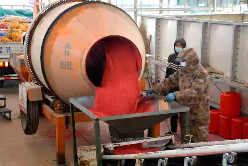 近日,江濱分公司對(duì)水稻種子進(jìn)行包衣(受訪者供圖)