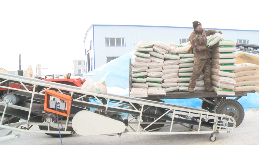 黑龍江圣豐種業(yè)有限公司的工人裝卸大豆種子(受訪者供圖)