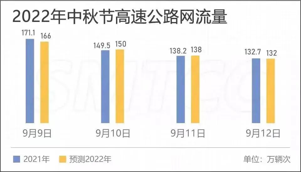 上海市交通指揮中心介紹,中秋期間,預計上海高速公路網車流規(guī)模總量達420萬輛次,日均流量約140萬輛次,與2021年同期基本持平,較常態(tài)周末上升15%。