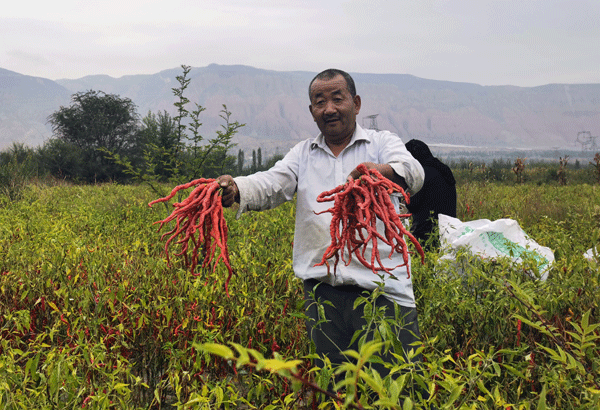 “以前這里的辣椒只是自給自足,農(nóng)民們種些辣椒自己吃,或者少量的自產(chǎn)自銷,每年種的數(shù)量也有限?,F(xiàn)在循化辣椒越來越出名,不少外地企業(yè)前來收購,農(nóng)民們開始大規(guī)模種植,經(jīng)濟收益也很可觀。我們公司今年通過流轉(zhuǎn)過來300畝地種植辣椒,明年入春打算上生產(chǎn)線,進行深加工,做一些辣椒醬等產(chǎn)品?!鼻嗪Hf雲(yún)生態(tài)科技有限公司負責(zé)人蘇小真向記者介紹。這家公司之前是主營花椒的,現(xiàn)在也開始做起了循化辣椒。