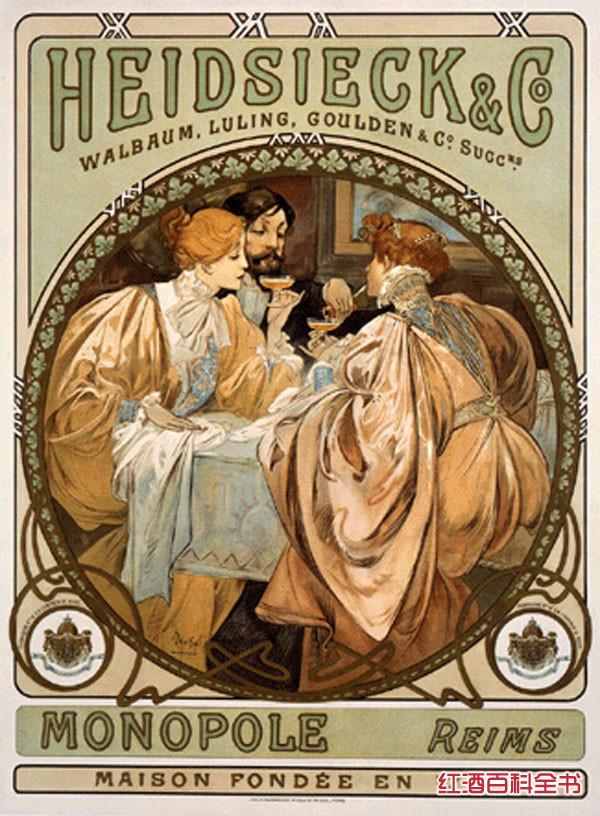 20世紀(jì)初期的藝術(shù)家們,如阿爾豐斯?慕夏(Alfons Mucha)和土魯斯-羅特列克(Toulouse-Lautrec),曾接受香檳公司的邀請,把香檳刻畫成慶祝之酒。在藝術(shù)家的筆下,香檳作為慶祝之酒的習(xí)慣流傳下來,成為了一種傳統(tǒng)。