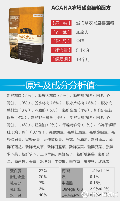 【愛肯拿Acanan農(nóng)場盛宴】愛肯拿的雞肉貓糧,一般450內(nèi)都能買到。肉含量75%,蛋白質(zhì)37%。