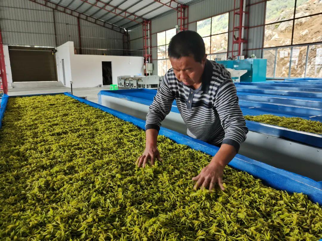 據(jù)了解,群樂村立足山區(qū)農(nóng)業(yè)特點(diǎn),于2019年因地制宜采用“公司+合作社+農(nóng)戶”模式,開始發(fā)展黃金茶種植。目前,基地面積約530畝,種植有黃金茶和白茶,品種原產(chǎn)于浙江安吉,因品質(zhì)上佳,市場售價高,有“一兩黃金一兩茶”的說法,且采摘期時金黃一片,故名“黃金茶”。