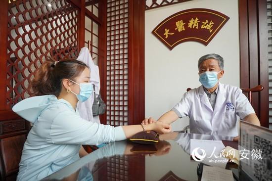 國醫(yī)堂亳州門診部內,醫(yī)生正在診脈。人民網(wǎng) 陳若天攝
