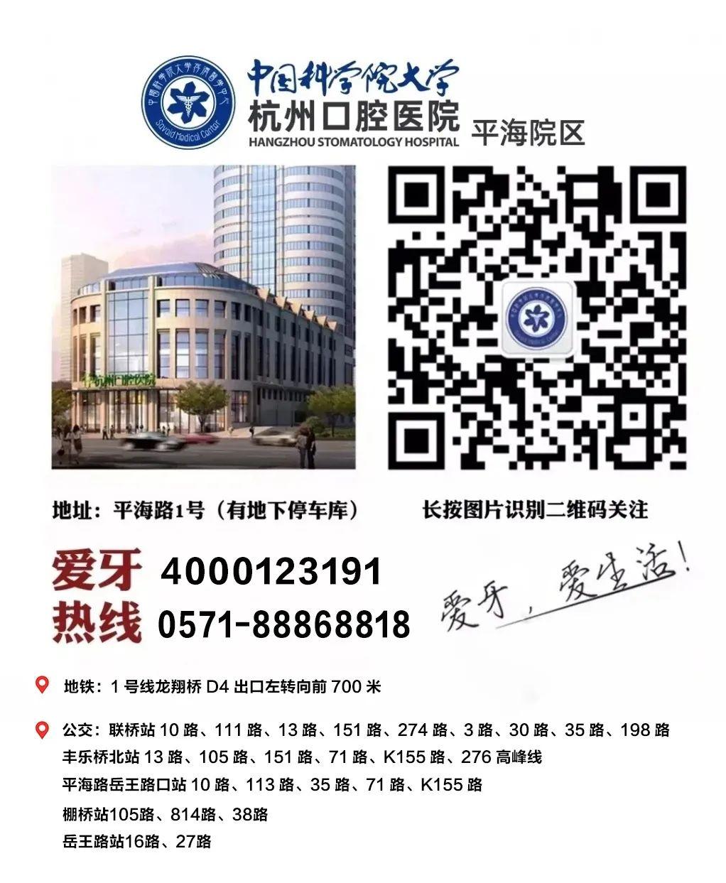 更多優(yōu)惠可咨詢4000-123191,或關注【杭州口腔醫(yī)院平海院區(qū)】微信公眾號。