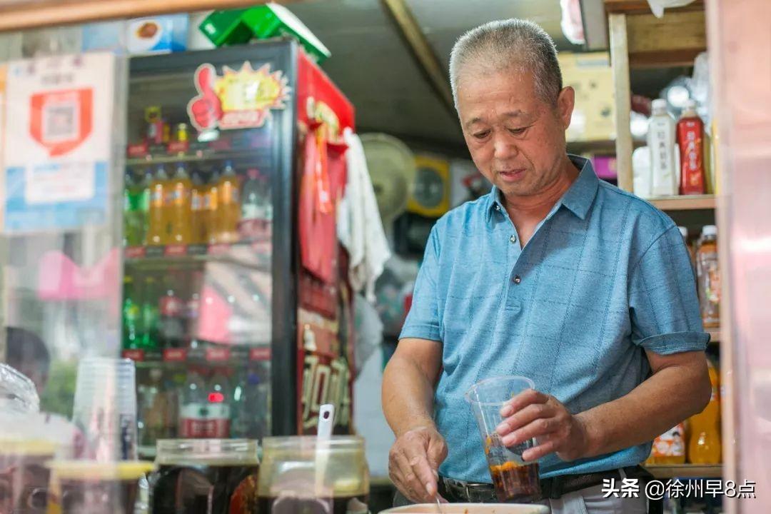 調(diào)制好的甜醋,榨菜、辣醬,簡簡單單幾樣配料,就這么沿用了幾十年。