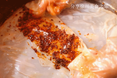 面皮鋪開,大呼的辣子直接摸在面皮上,在這里吃卷皮,辣椒油一定要給足,我們徐州人就是貪戀辣椒濃厚的香氣。