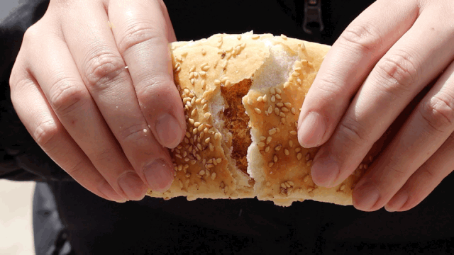 一口咬下去,首先感受到的應該是餅皮的酥香,接著便是醬香、蔥香和肉香,吃完之后滿口余香,回味無窮。