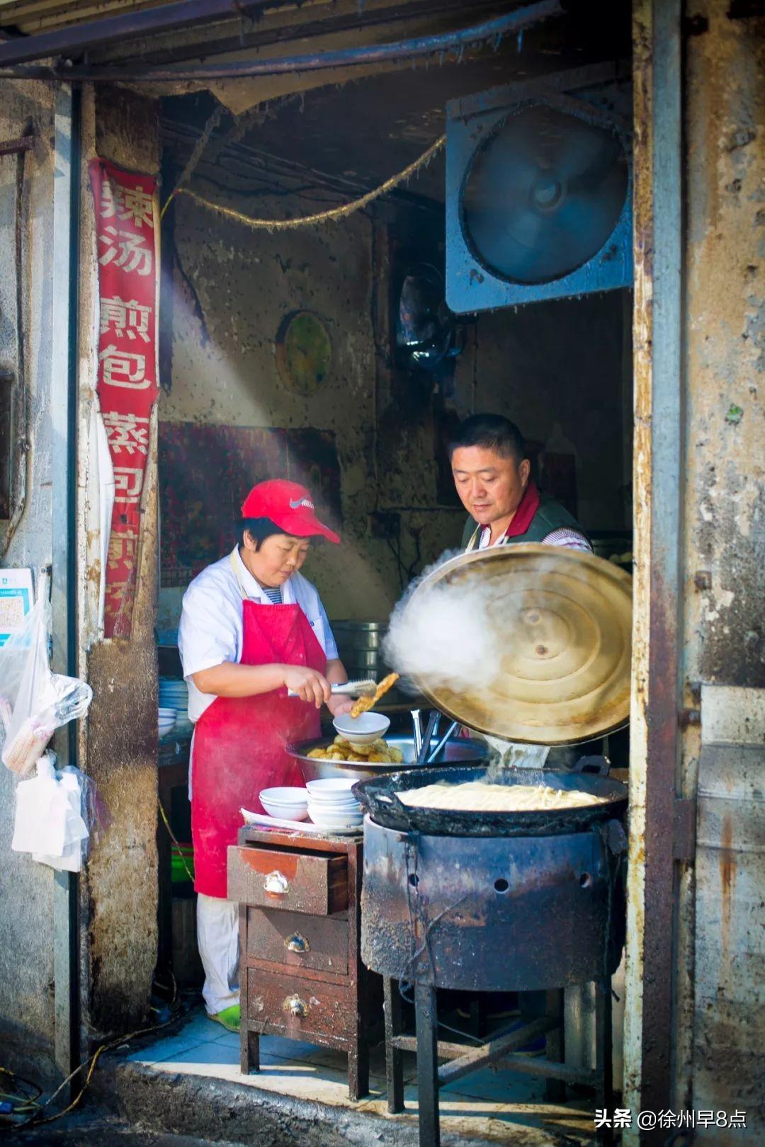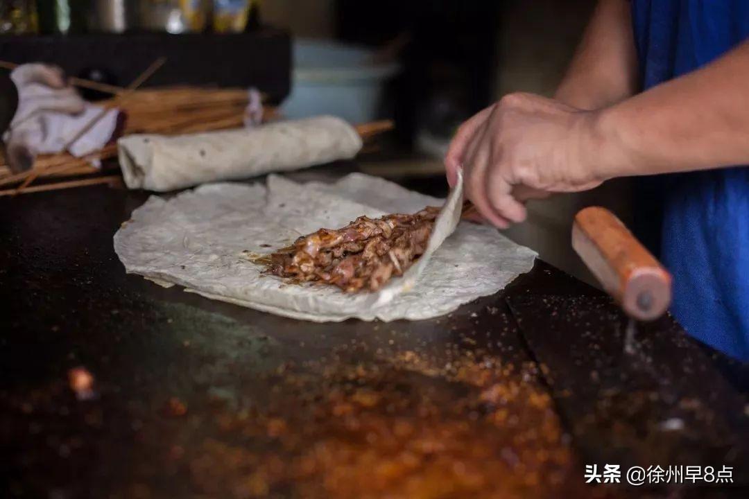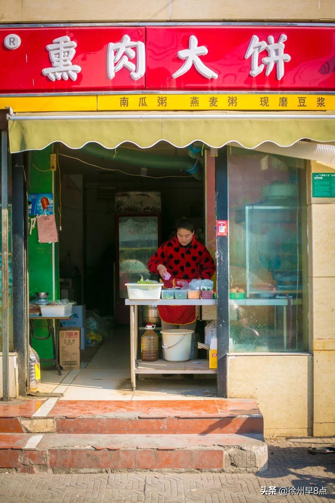 2005年,來自河南的河南一對夫妻來徐州打工,在豐儲街開了一家熏肉大餅,小小的操作臺,支撐了這個小店走過十幾年。