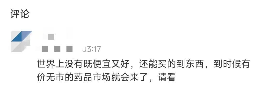 當(dāng)然,這個說法也并非該媒體,而且直到今年的醫(yī)保集采新聞中,在評論區(qū)也能看到蹤跡。一直有聲音稱,醫(yī)保局的做法是在“迎合大眾的無腦”、“會摧毀醫(yī)藥行業(yè)”。