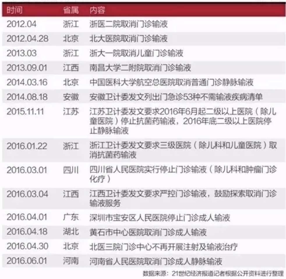 2016年,衛(wèi)計委、發(fā)改委、食藥總局、中醫(yī)藥管理局等14部門聯(lián)合制定《遏制細菌耐藥行動計劃(2016-2020年)》,嚴控零售藥店銷售抗生素,大幅度降低獸用抗生素等抗菌藥品,并且在全國進一步推行取消輸液。