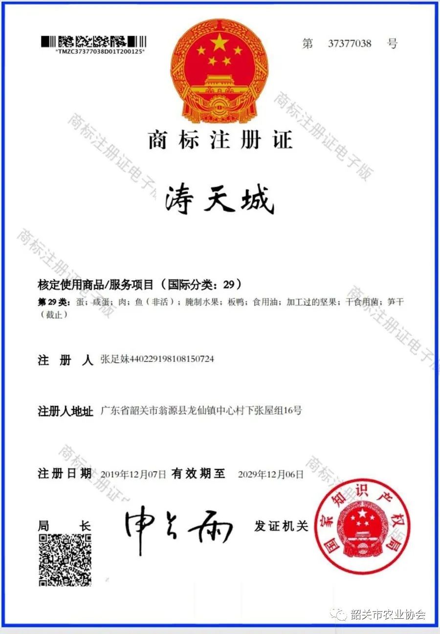 產(chǎn)品證書:“濤天城”商標(biāo)注冊(cè)證