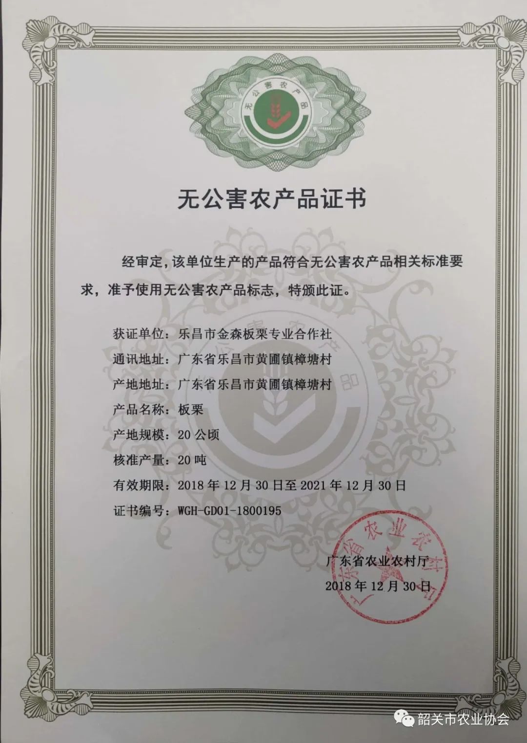 產(chǎn)品證書:無(wú)公害農(nóng)產(chǎn)品證書、廣東省產(chǎn)品證書
