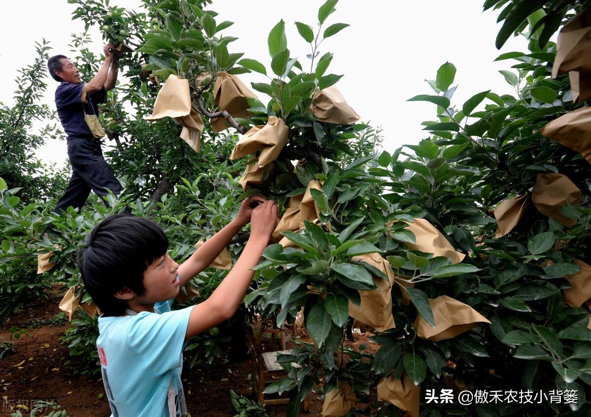 蘋果的果袋選擇上,建議選擇疏水和透光透氣性較好的雙層果袋,農技小背簍不建議大家使用單層果袋和塑料薄膜果袋。