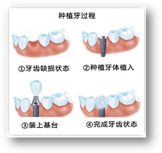 種植牙整個(gè)過(guò)程要多久?一般來(lái)說(shuō),種植共分為以下步驟。