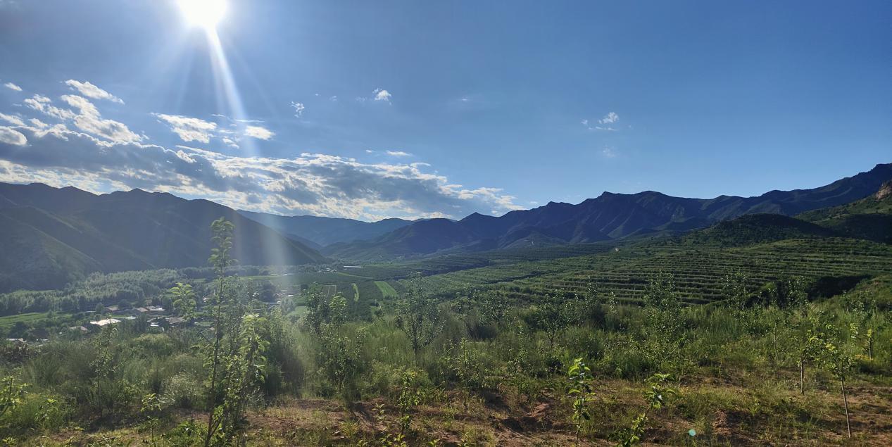 7月末,正是蘋果花芽分化的關(guān)鍵時(shí)期,這時(shí)花芽分化的情況,決定著明年蘋果的成果質(zhì)量。在小城子鎮(zhèn)八家村的小城子鎮(zhèn)萬畝林果產(chǎn)業(yè)園觀景臺(tái)上,能看到一棵棵蘋果樹一圈圈圍住一座座小山。