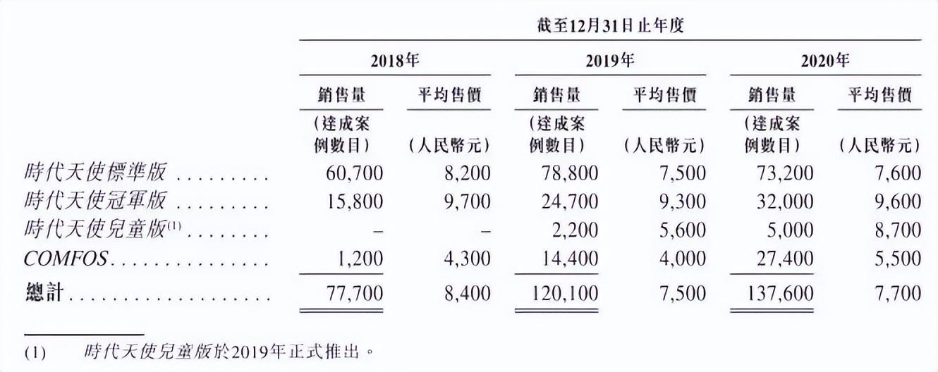 時(shí)代天使招股書(shū)顯示,時(shí)代天使分別推出了標(biāo)準(zhǔn)版(現(xiàn)已升級(jí)成經(jīng)典版)、版、兒童版和COMFOS等4款產(chǎn)品。2020年,它們的出廠價(jià)分別為7600元、9600元、8700元和5500元,對(duì)應(yīng)建議零售價(jià)為3.2萬(wàn)元、4萬(wàn)元、2.6萬(wàn)元和2.4萬(wàn)元。