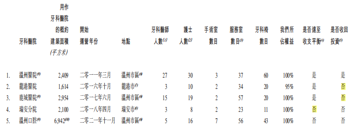 龍港醫(yī)院成立于2015年8月,2016年10月開始運營;鹿城醫(yī)院成立于2016年6月,2017年6月開始運營;瑞安分院成立于2017年11月,2018年4月開始運營。中國口腔醫(yī)療此前曾在招股書中表示,“開辦新的牙科醫(yī)院通常大約需要四年方能達到收支平衡,約需要七年才能收回初始投資。”這也意味著,龍港醫(yī)院和鹿城醫(yī)院即將到達收回初始投資期,瑞安分院即將到達收支平衡期,但據(jù)其招股書披露,龍港醫(yī)院和鹿城醫(yī)院尚未收回初始投資,瑞安分院也尚未實現(xiàn)收支平衡。