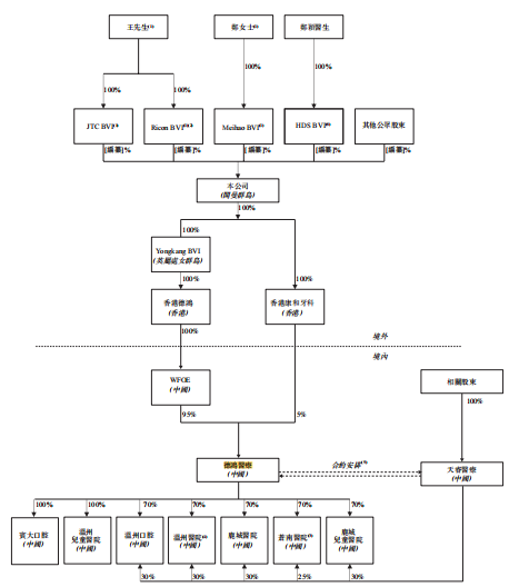 招股書顯示,中國口腔醫(yī)療在上市前的股東構架中,控股股東為王曉敏、鄭蠻夫婦,二人分別持股85%、10%,合計持股95%。中國口腔醫(yī)療的外部股東——香港注冊牙科醫(yī)生鄭穎醫(yī)生持股5%。