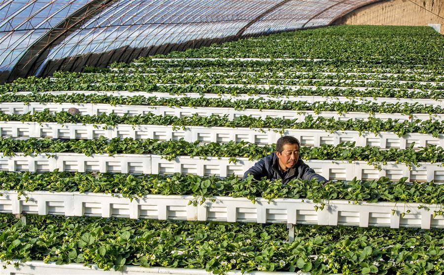 一位農(nóng)民在太谷縣侯城鄉(xiāng)東山底村蔬菜大棚里勞作(1月2日攝)。 新華社記者 王飛航 攝