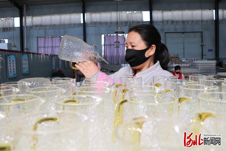 河間永華匯玻璃制品有限公司,質(zhì)檢部工人在檢查產(chǎn)品質(zhì)量。李世文攝
