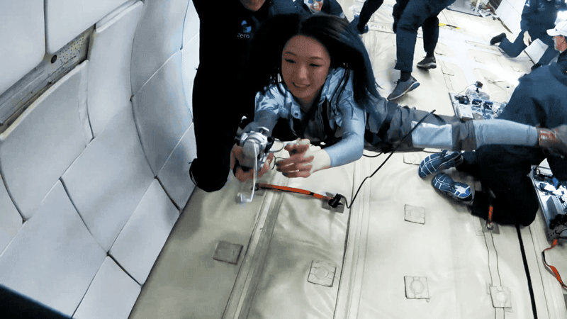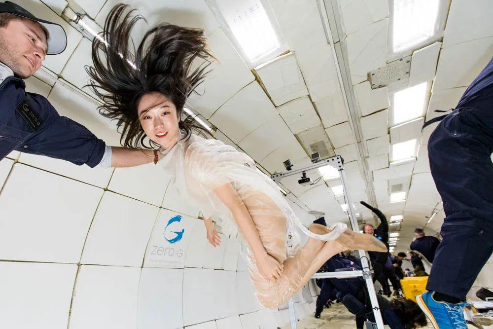 宇宙探索計(jì)劃拋物線飛行實(shí)驗(yàn),身著為失重環(huán)境設(shè)計(jì)的時(shí)裝