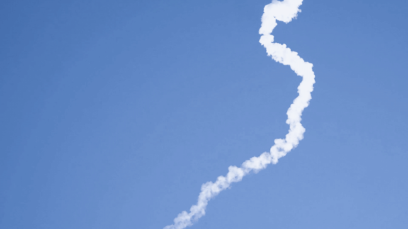 宇宙探索計(jì)劃的作品乘著火箭進(jìn)入太空,留下一道彎彎曲曲的痕跡