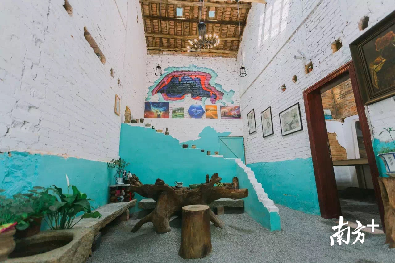 今年24歲的葉建基從小生活在大埔圍村,兩年前,從廣州大學(xué)美術(shù)與設(shè)計(jì)學(xué)院工藝美術(shù)專業(yè)畢業(yè)后的他,找到高中同學(xué)張子林,一起把自家在大埔圍村的祖屋——一座破舊的兩層高的紅磚房改造成工作室,并組建了墻繪團(tuán)隊(duì)——π藝術(shù)空間。