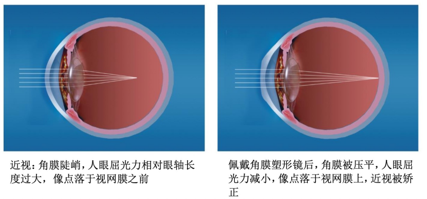 角膜塑形鏡矯正近視原理示意圖