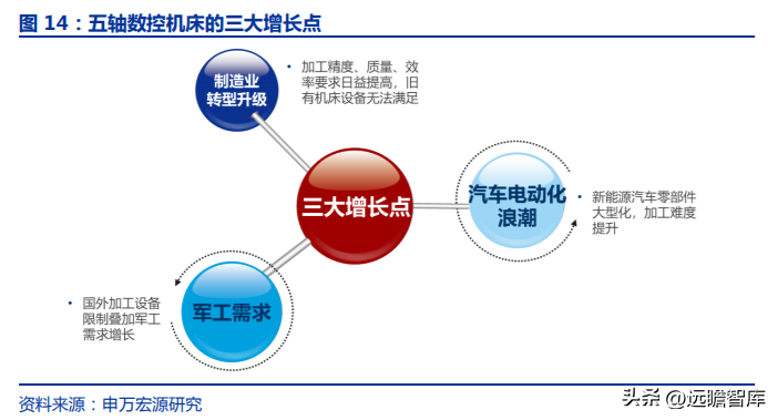 我國五軸數(shù)控機床行業(yè)面臨制造業(yè)轉(zhuǎn)型升級、軍工需求旺盛和新能源汽車行業(yè)爆發(fā)等重大機遇,行業(yè)實現(xiàn)快速發(fā)展。