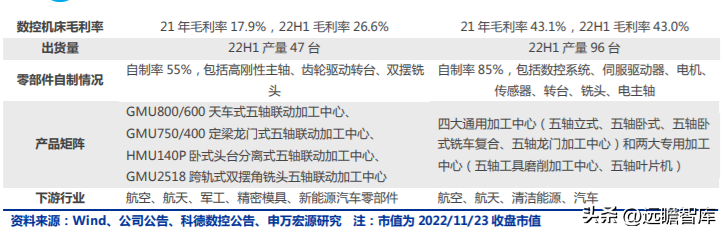 2022 年,公司增設(shè)華東生產(chǎn)基地,主要用于生產(chǎn) HMU-140P 及 GMU-2518 等專用大機型,用于航空航天發(fā)動機鈦合金、高溫合金加工以及精密大型汽車模具加工等。2022 年上半年出貨量 47 臺。