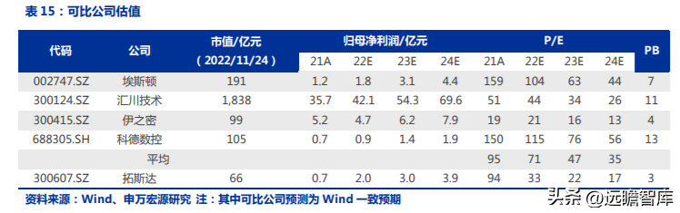 預(yù)計 22/23/24 年歸母凈利潤分別為 2.0/3.0/3.9 億元,公司目前股價(2022/11/24)對應(yīng) 22-24 年 PE 分別為 33、22、17X。22-24 年可比公司 PE 均值為 71、47、35X,公司的估值低于行業(yè)均值。