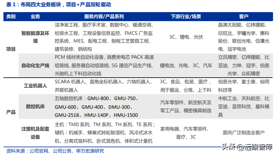 ① 智能能源及環(huán)境管理業(yè)務(wù):公司擁有經(jīng)驗豐富的設(shè)計團隊與多項工程建設(shè)安裝資質(zhì),服務(wù) 3C、鋰電、光伏等行業(yè)的廠房建設(shè);②自動化應(yīng)用系統(tǒng)業(yè)務(wù):為新能源、3C、光電、汽車零部件等行業(yè)頭部客戶提供自動化系統(tǒng)解決方案。