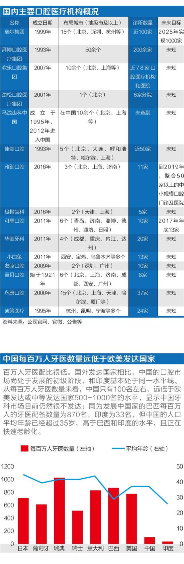 “現(xiàn)在口腔行業(yè)的格局與10年前完全不一樣,拜博連鎖在2014年獲得聯(lián)想控股投資后,現(xiàn)在按體量在行業(yè)是大的;瑞爾集團(tuán)的高端齒科走在前列,按其目前架構(gòu),未來將打算在美股上市;歡樂口腔也在努力往第一個梯隊(duì)靠。以往佳美口腔連鎖、圣貝口腔都曾有過上市計(jì)劃,但目前未有動靜?!薄安俦P手”分析了一下目前口腔行業(yè)的格局。