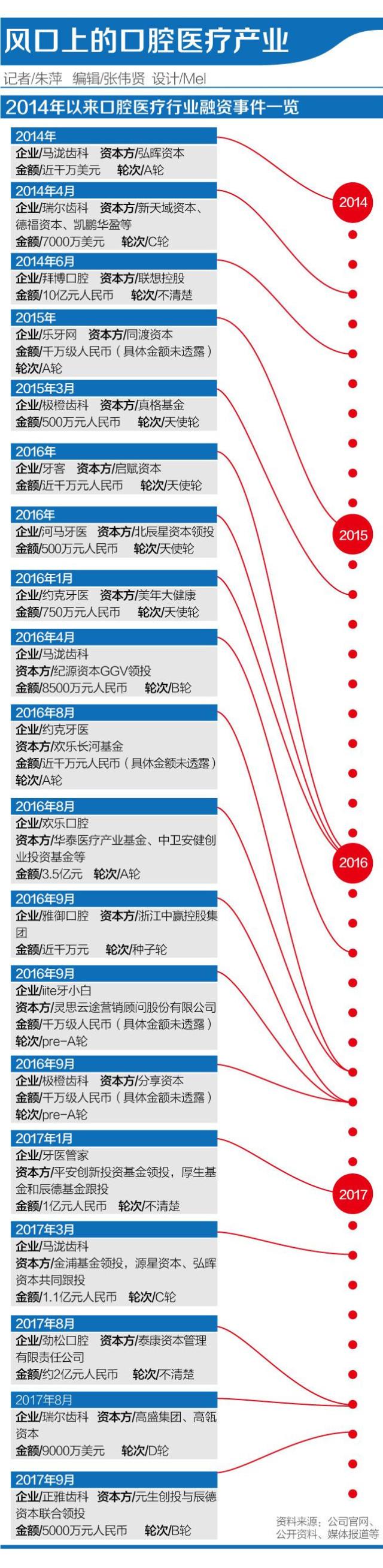 8月底,瑞爾集團(tuán)宣布獲得9000萬美元的D輪融資,由高盛集團(tuán)、高瓴資本投資;9月,上海正雅齒科科技有限公司也宣布完成5000萬元人民幣的B輪融資。