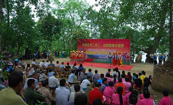此外,在節(jié)日里,在豐收的季節(jié)里,扶綏極具濃郁地方特色的三穿花舞、白鷺舞、左江采茶舞等便會舞動起來。想象一下,銅鼓敲起來,山歌唱起來,舞裙旋起來,白發(fā)的老人笑起來,該是多美的一幅圖景!