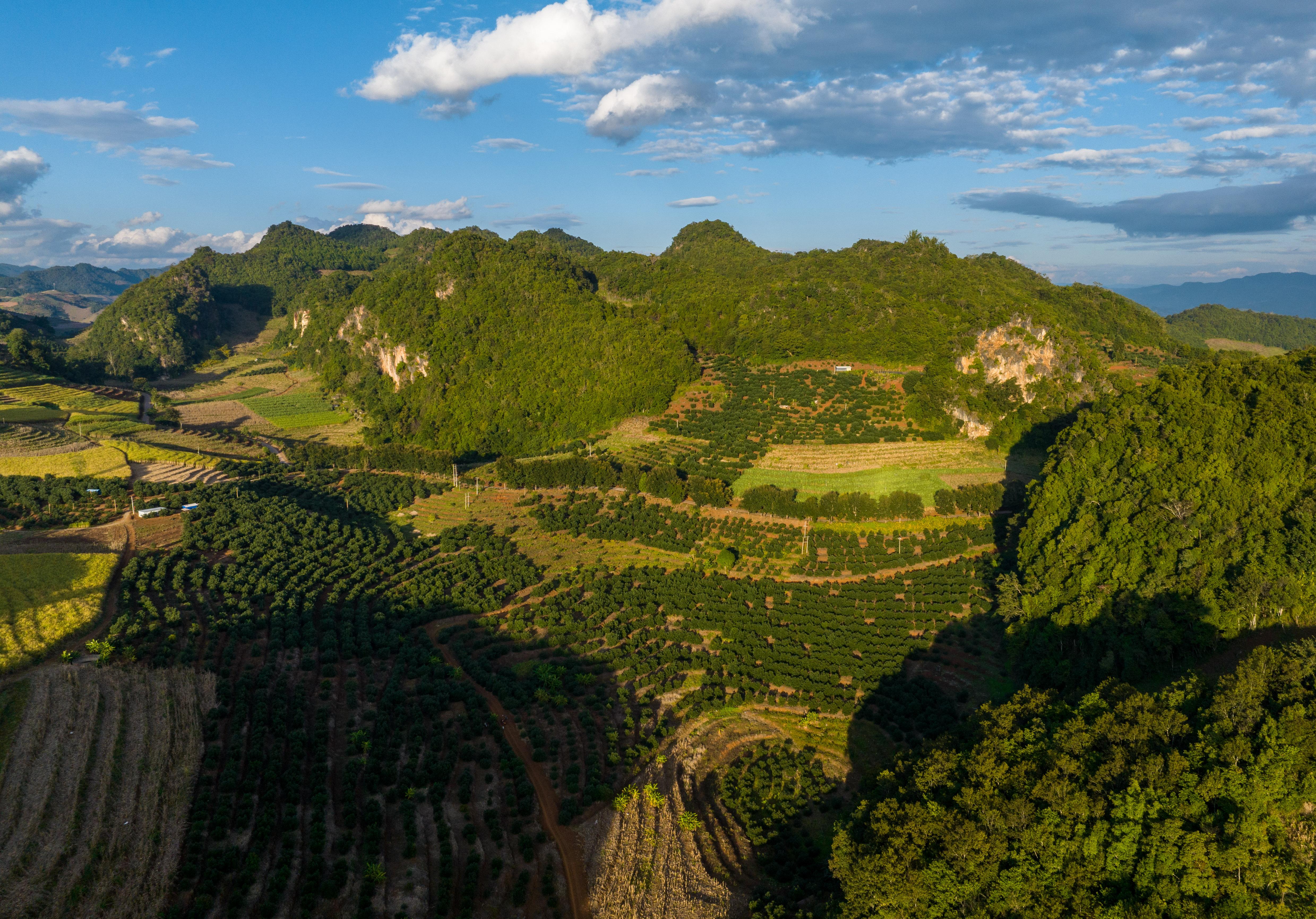 俯瞰云南省孟連縣牛油果種植基地(無人機照片,2022年11月17日攝)。新華社記者 江文耀 攝
