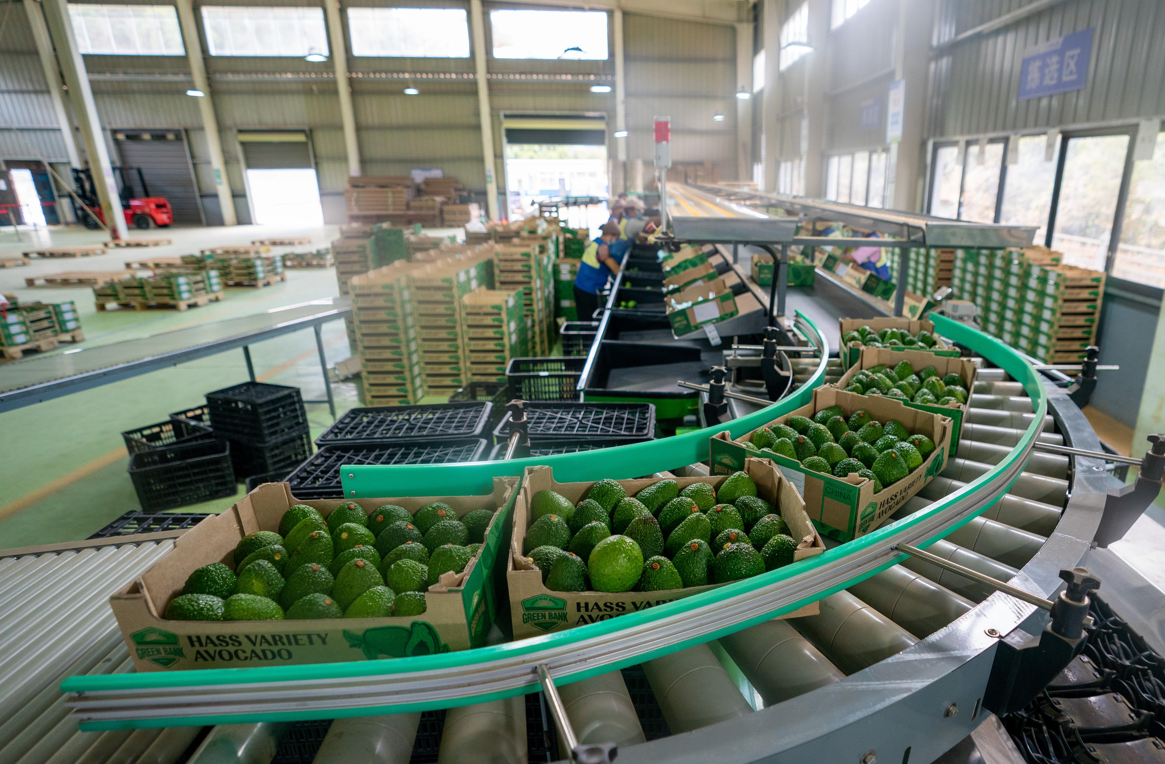 在云南省孟連縣進行分揀包裝的牛油果(2022年11月17日攝)。新華社記者 江文耀 攝