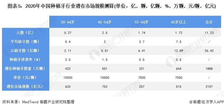 根據(jù)《2020中國口腔醫(yī)療行業(yè)報告》數(shù)據(jù)測算,目前我國人口總?cè)毖罃?shù)達到26.42億顆,潛在種植牙數(shù)量1888萬顆,潛在種植牙市場規(guī)模超過2000億元。