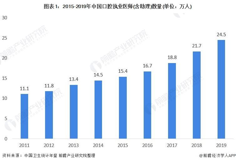 種植牙醫(yī)的數(shù)量影響種植牙市場供給。近年來我國口腔執(zhí)業(yè)醫(yī)師數(shù)量大幅逐年增加,從2011年的11.1萬人增長到2019年的24.5萬人。根據(jù)數(shù)據(jù)顯示,我國口腔醫(yī)師中掌握種植牙技能的醫(yī)生占比約20%,按照此比例可粗略測算出我國種植牙醫(yī)數(shù)量在5萬人左右。但相比較于韓國,我國種植牙醫(yī)滲透率仍然較低,韓國口腔醫(yī)師中掌握種植牙技能的醫(yī)生占比達到了80%,隨著我國種植牙市場需求的不斷提升,我國種植牙醫(yī)數(shù)量將不斷增長,滲透率不斷提高。