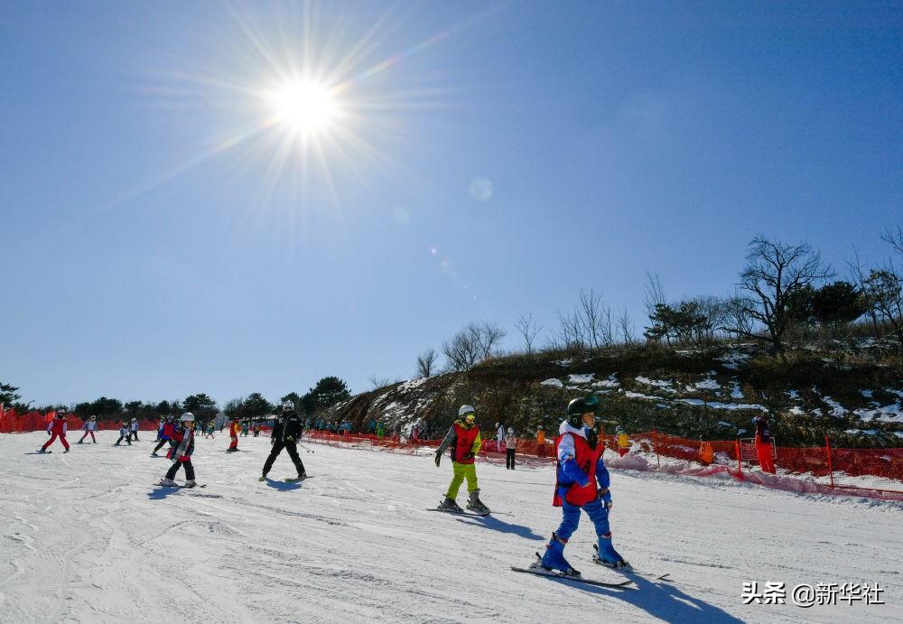 在天津薊洲國際滑雪場,教練與小朋友在雪道上練習(xí)滑雪(2月20日攝)。新華社記者 孫凡越 攝