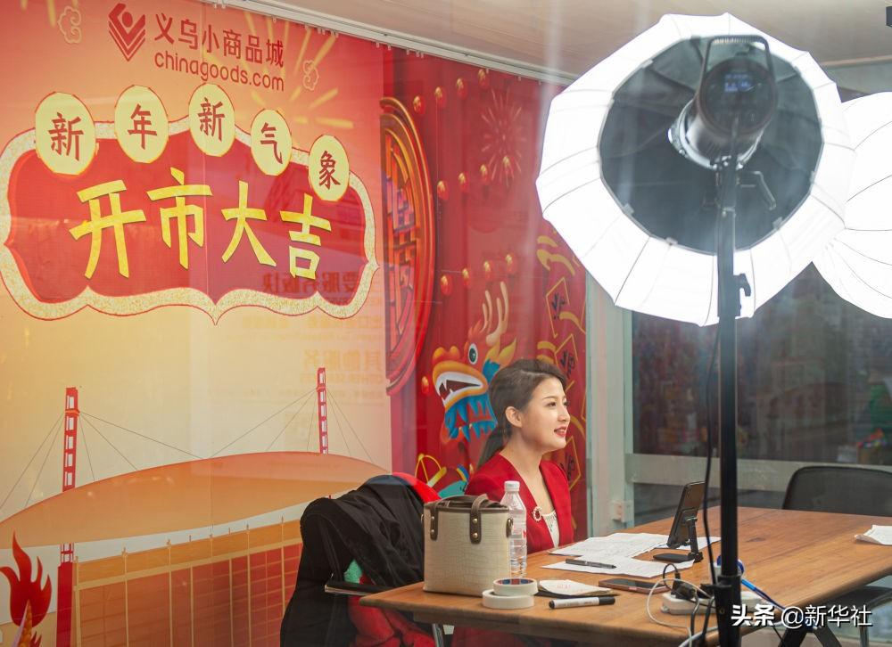 2月12日,在浙江義烏,主播通過直播方式向采購商介紹義烏中國小商品城開市情況。新華社記者 江漢 攝