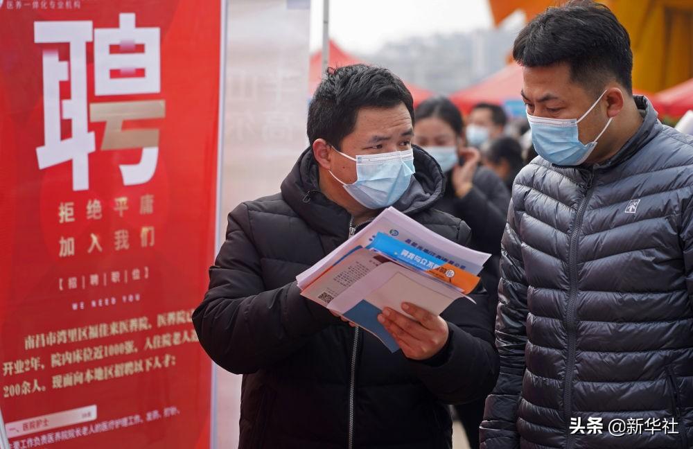 2月25日,江西省南昌市灣里管理局開展“春風(fēng)行動”線下招聘活動。這是求職者在招聘會現(xiàn)場交流。新華社記者 萬象 攝