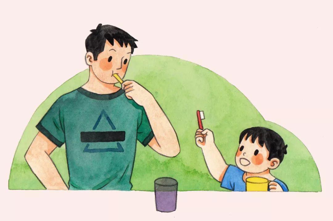 爸爸媽媽可以在自己刷牙的時(shí)候也給孩子一個(gè)牙刷,