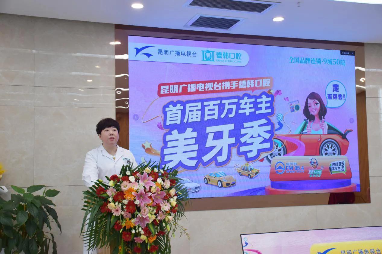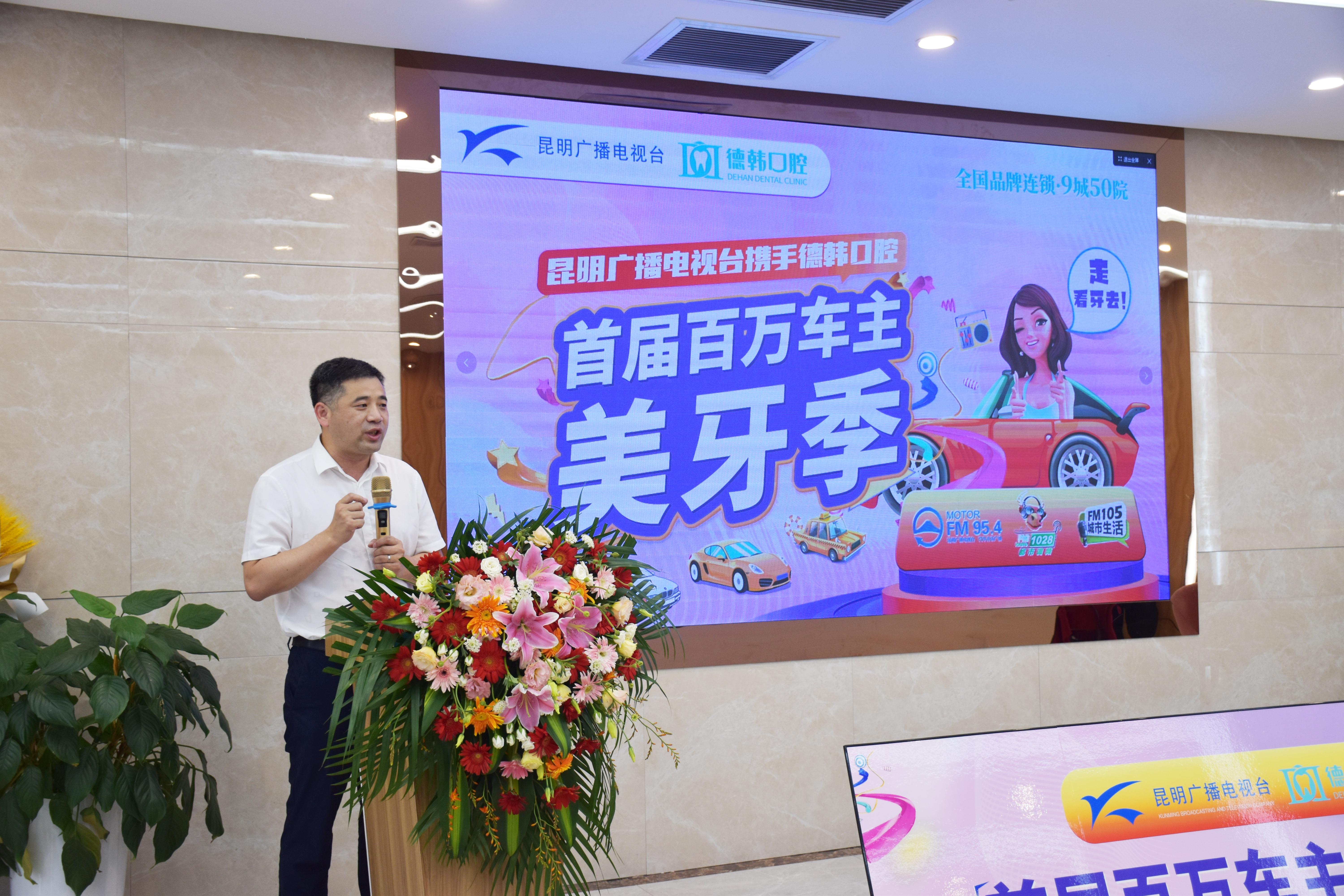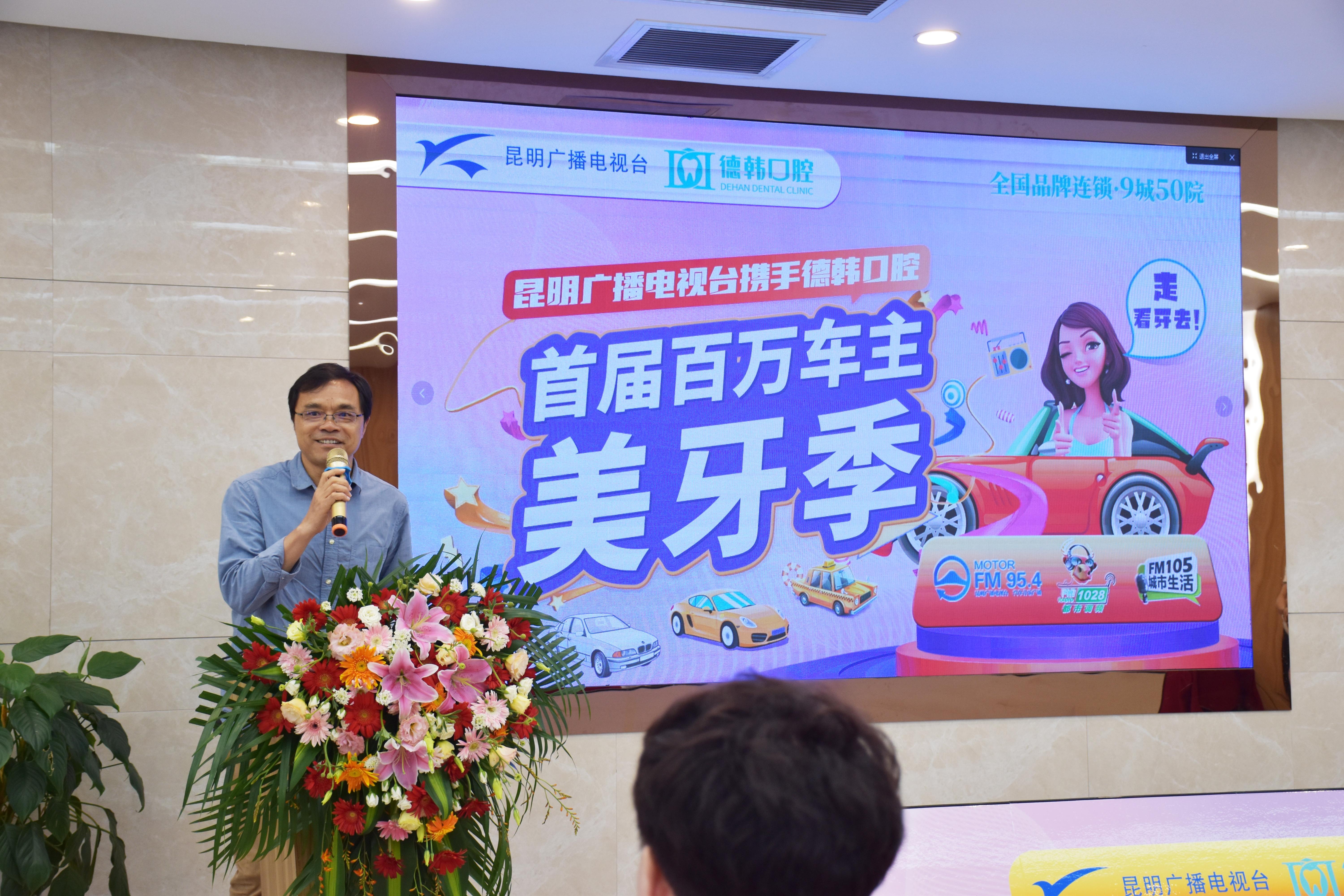 7月17日,昆明廣播電視臺(tái)“首屆百萬車主美牙季”啟動(dòng)儀式暨新聞發(fā)布會(huì)在位于青年路金鷹購(gòu)物商場(chǎng)的4樓德韓口腔舉行。昆明廣播電視臺(tái)臺(tái)務(wù)委員、全媒體廣播中心主任杜小兵表示,口腔健康是全身健康的重要組成部分,是反映一個(gè)和地區(qū)居民身心健康,文明水平的重要標(biāo)志,作為媒體,有責(zé)任對(duì)群眾的健康作出積極的引導(dǎo),也有能力整合資源,為廣大聽眾提供有品質(zhì)的醫(yī)療資源。