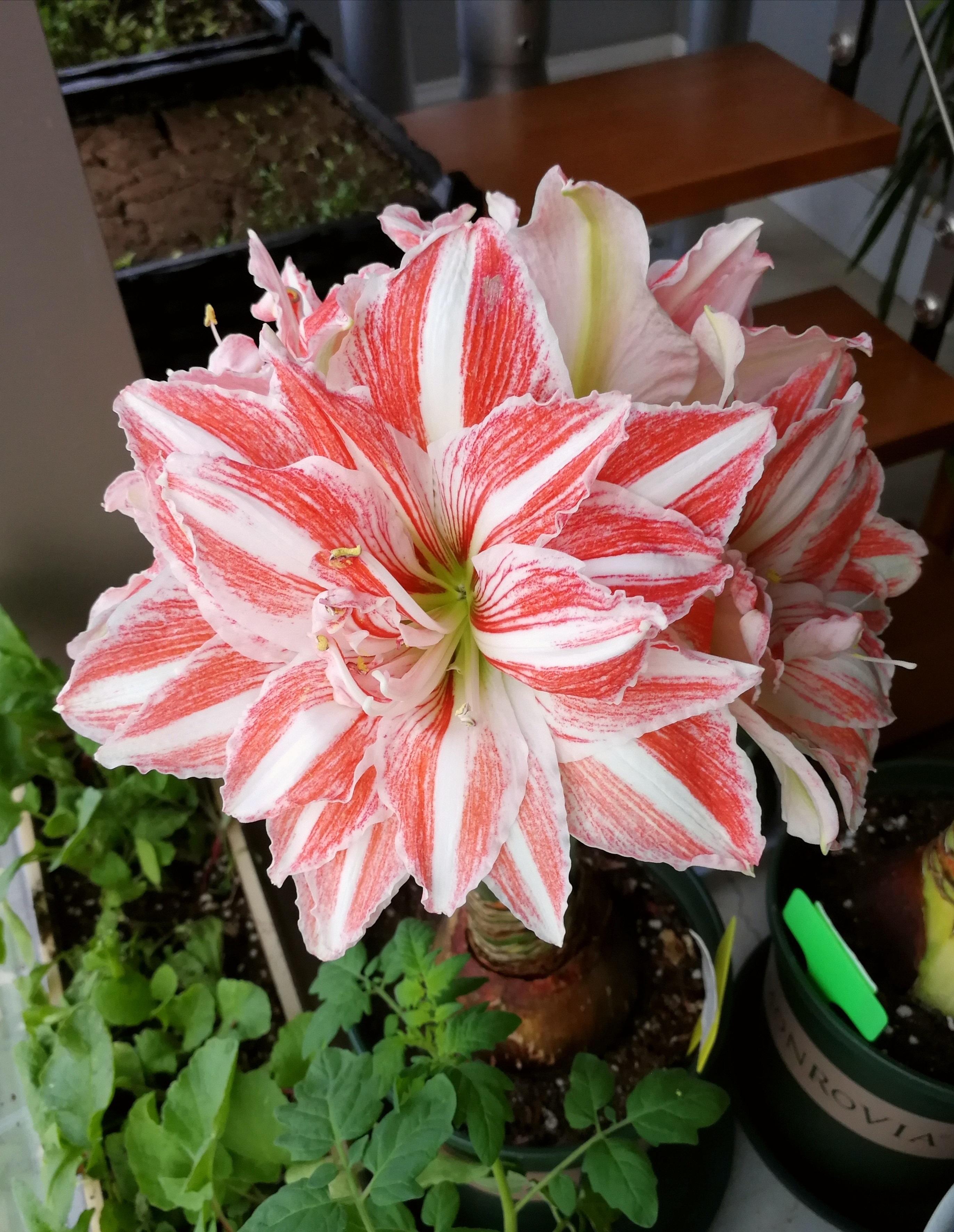 這種花名叫“跳舞皇后”(Hippeastrum Dancing Queen),簡(jiǎn)稱舞后,是球根花卉朱頂紅界的一個(gè)很的品種,屬于荷蘭朱,人工培育的園藝品種,專為觀賞而生,可地栽造景、做地被,也可盆栽觀賞,花朵還能當(dāng)切花,是世界上栽培多的朱頂紅之一,喜歡洋朱的花友幾乎人手一株,地位和微型月季里的“果汁陽(yáng)臺(tái)”差不多,很適合新手作為入門(mén)。