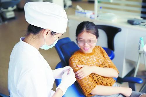 口腔醫(yī)院的醫(yī)師為患者進(jìn)行修復(fù)調(diào)節(jié)。