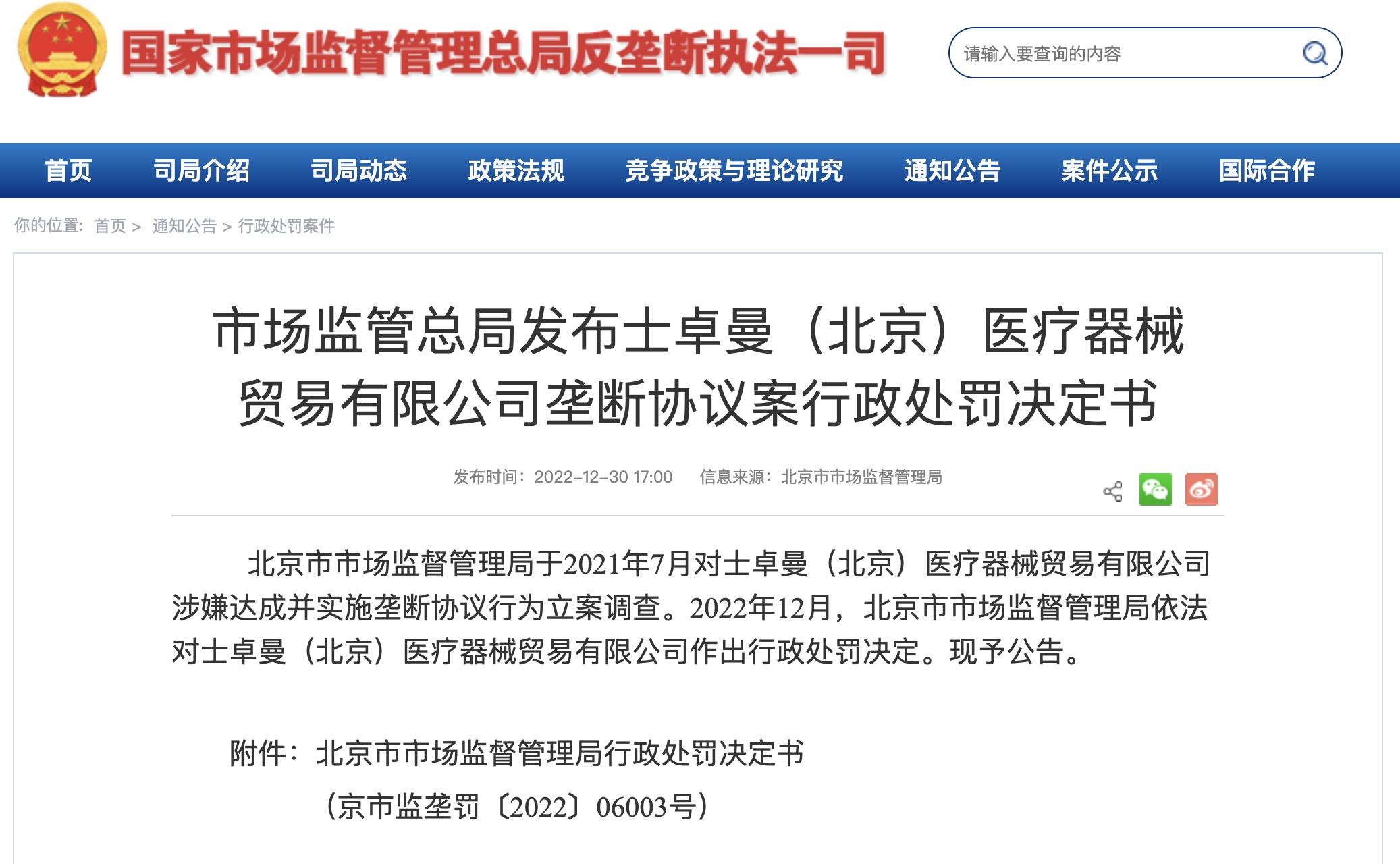2022年12月30日,市場監(jiān)督管理總局通報了一起醫(yī)療行業(yè)壟斷協(xié)議案件。知名齒科器械企業(yè)士卓曼因達成縱向壟斷協(xié)議維持品牌種植牙高價,被北京市市場監(jiān)管局處以3438.55萬元罰款。