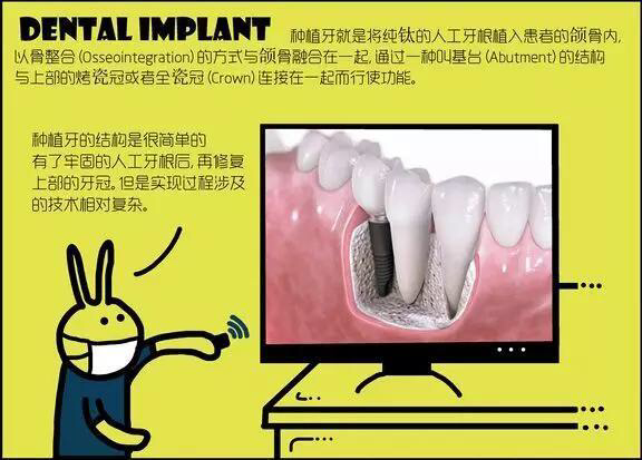 我們經(jīng)常說的種植牙指的是在缺牙區(qū)所在的牙槽骨上植入一顆表面經(jīng)過特殊處理的類似"螺絲釘"的人工牙根,然后在人工牙根上修復(fù)一顆和天然牙類似的人工牙,行使咀嚼和發(fā)音等功能。